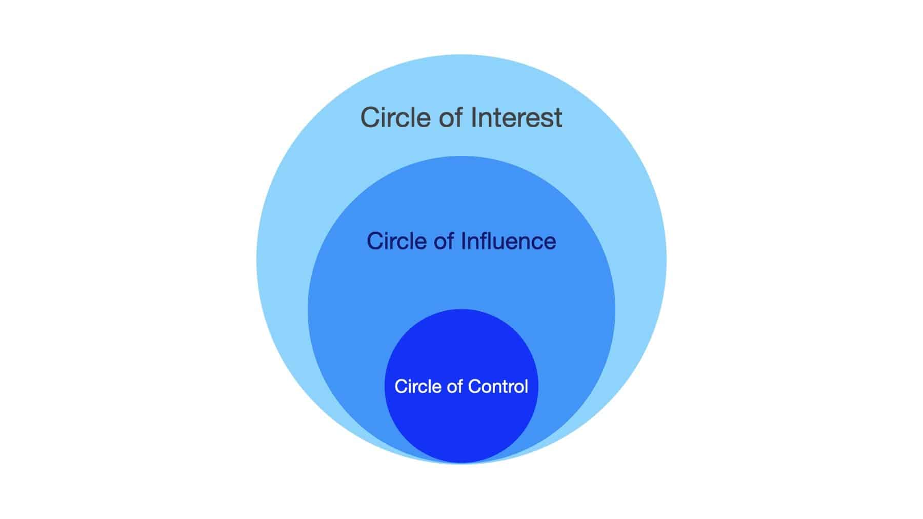 Circle of Interest (Interessenkreis): Dies umfasst alle Themen und Ereignisse, die unsere Aufmerksamkeit erregen, auch wenn wir keinen direkten Einfluss darauf haben. Dazu gehören globale Ereignisse, Markttrends oder gesellschaftliche Entwicklungen. Hierzu zählen im Übrigen auch gemäß der Eisenhower-Matrix alle C-Prioritäten, die mit großer Dringlichkeit daherkommen.